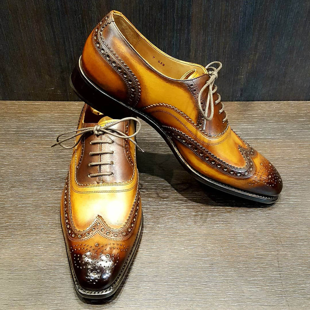 Ce soulier en cuir naturel est à faire patiner par votre artisan patineur.